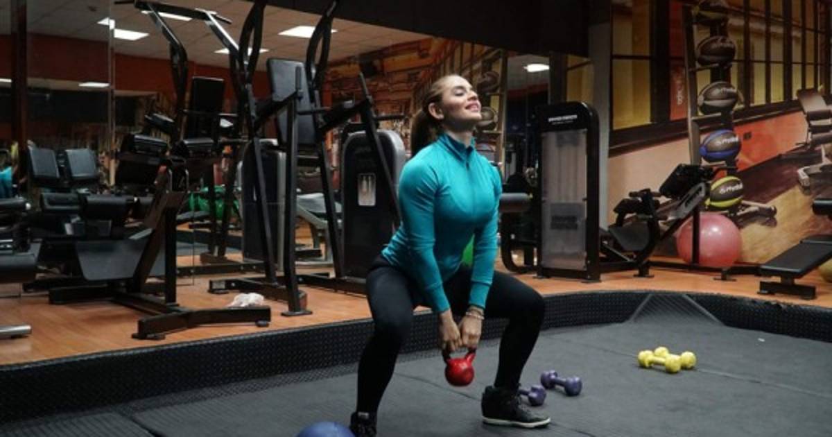 3. Glúteos y hombros: sumo squats y hombros con kettlebell.