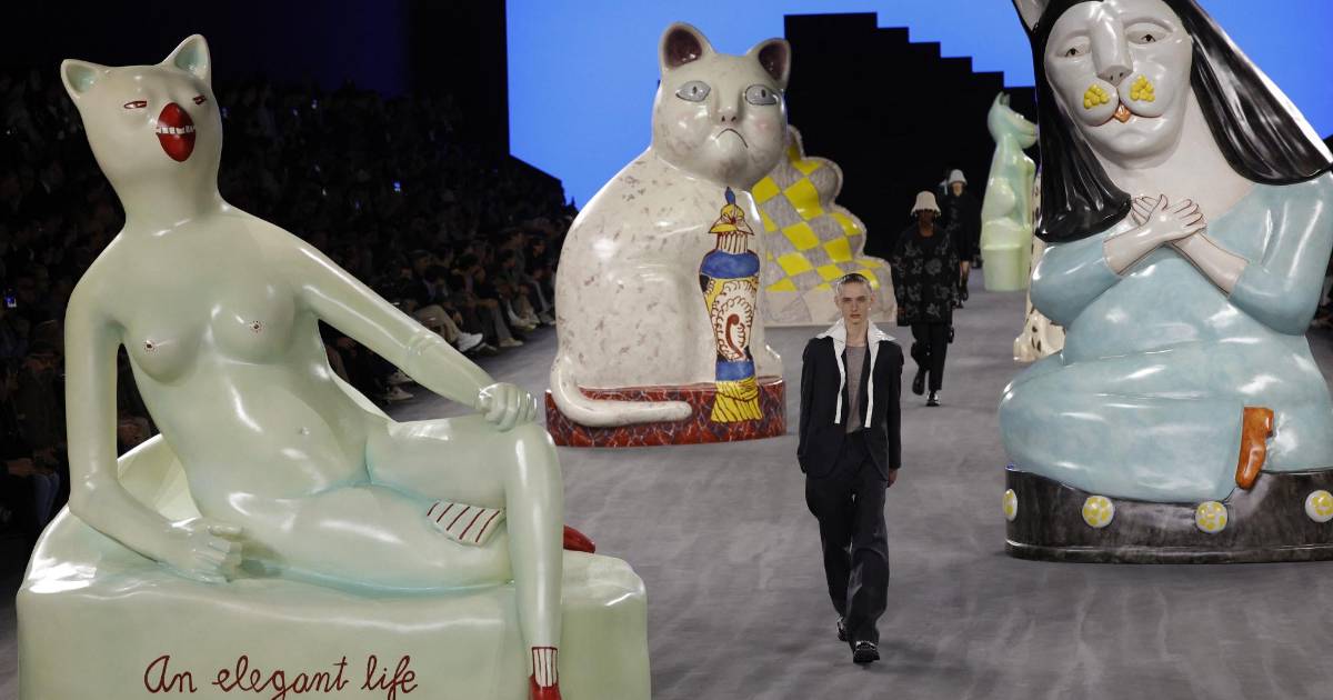 El estilista Kim Jones rindió homenaje el viernes en París a la figura del artesano con un desfile desenfadado para Dior Homme, con zuecos, ropa cómoda y estampados de dibujos casi infantiles, en una pasarela llena de gatos de cerámica gigantes.