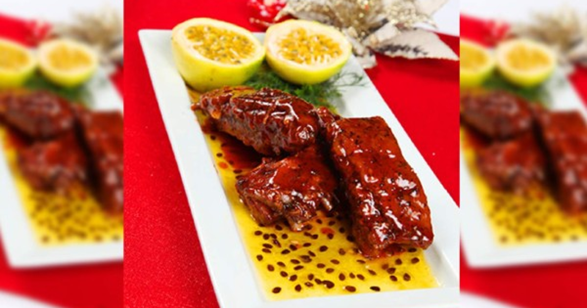 3. Pasar la salsa por un colador fino y bañar las costillas, tapar con papel aluminio y llevar al horno precalentado a 350°F. Cocinar durante 45 minutos o hasta que la carne esté bien cocida.