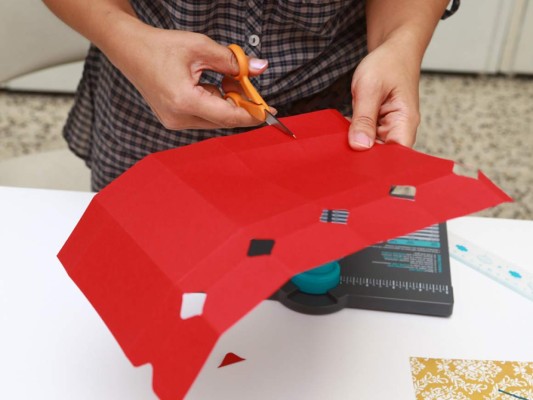 Perfore cada uno de los orificios. Luego proceda a pegar el papel decorado.