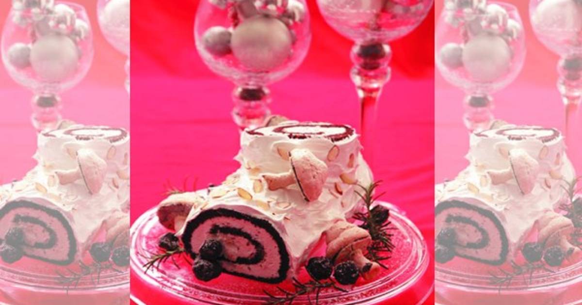 11. Enrollar de nuevo cuidadosamente. Envolver de nuevo en el paño y asegurarlo. Enfriar por 2 horas en el refrigerador o hasta que esté firme. Cubrir con merengue y decorar con hongos de merengue suizo y trufas de chocolate. Refrigerar hasta el momento de servir.