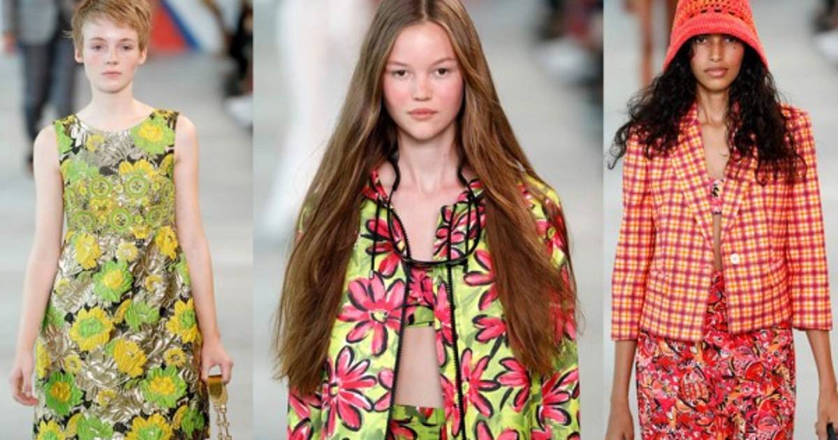El modisto estadounidense propone vestidos, faldas y pantalones en verde lima, amarillo limón y rosa fucsia con un predominio de los estampados de flores, que complementó con sombreros ondulados de playa, sandalias de plataforma y bolsos de rafia.