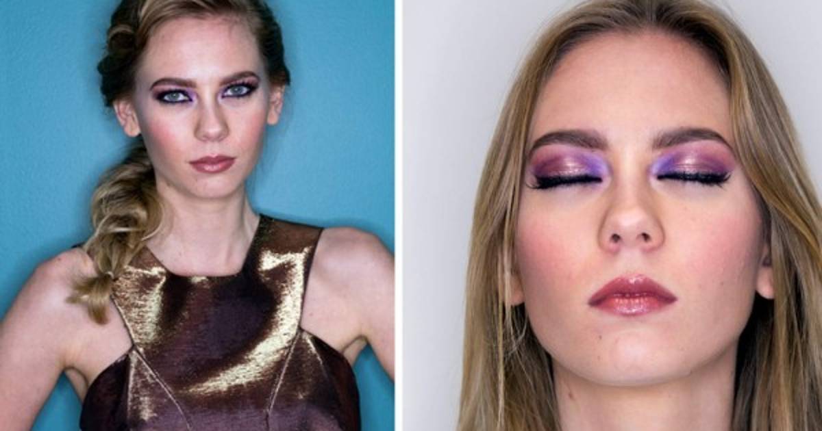 Las sombras siempre serán el punto focal. En este caso se aplicaron en versión húmeda en morado y se difuminaron perfectamente. La base debe ser del tono acorde al de tu piel para que luzca muy natural.