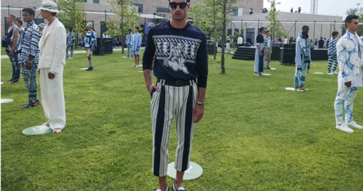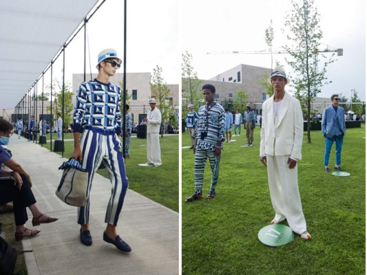 colección masculina en azul, blanco y negro, muy al estilo de la costa amalfitana, en uno de los dos únicos desfiles presenciales de la