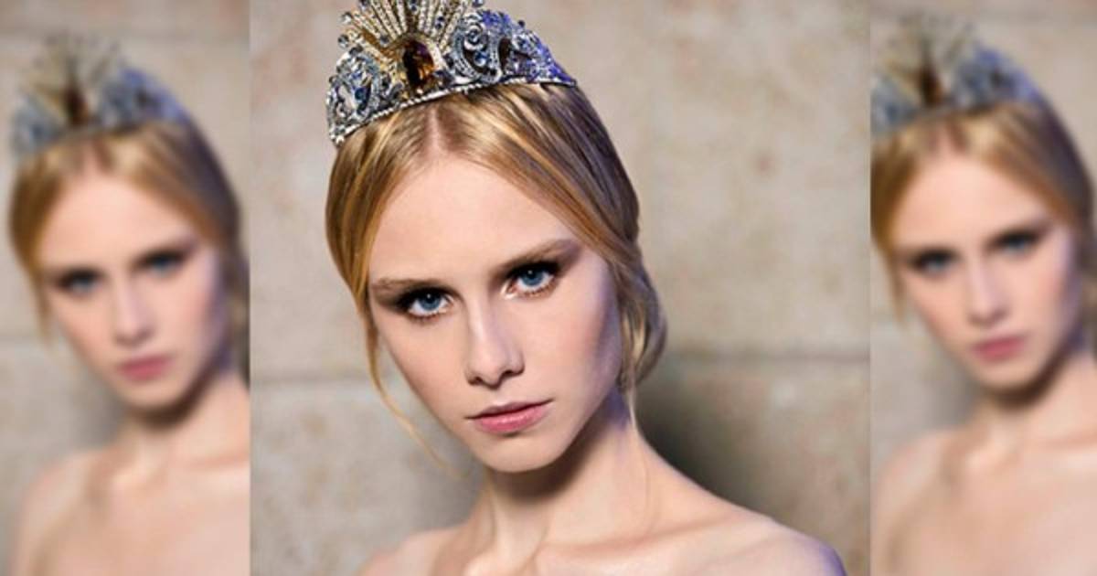 Con 380 cristales swarovski, la diadema refleja una escena clave del primer acto de la ópera, en la que un rayo de sol atraviesa las aguas del Rin para revelar el oro protegido por las tres hijas del río, pero al mismo tiempo despierta la atención del enano nibelungo Alberich, que les roba el tesoro.