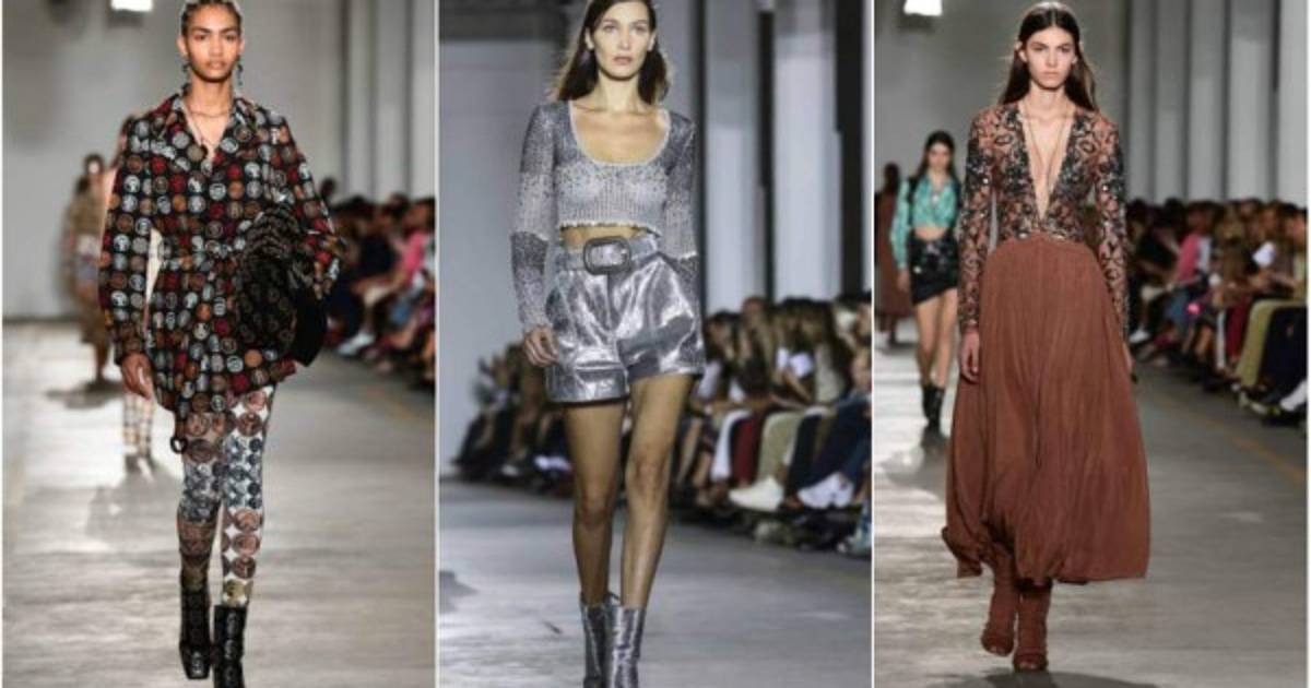 En complementos, también se vieron anchos cinturones plateados, collares metalizados y gafas de sol con cristales translúcidos.