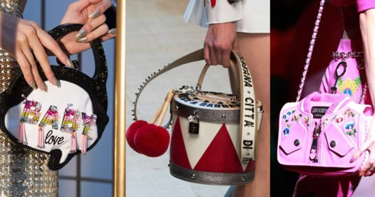 Tal es el caso del clutch de Charlotte Olympia, que incluye motivos en miniatura de un lipstick, un perfume y un espejo. También incluye en su colección de primavera -verano divertidos bolsos con figuras de frutas como piñas y sandías. Los bolsos de mano de estilo futurista de Mark Cross, harán que llame, sin duda, la atención.