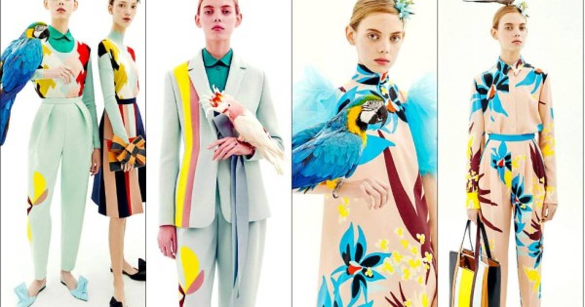 Pantalones con plices. Trajes sastres con alegres estampados. Vestidos de cuello alto. Con rayas y bloques de color.