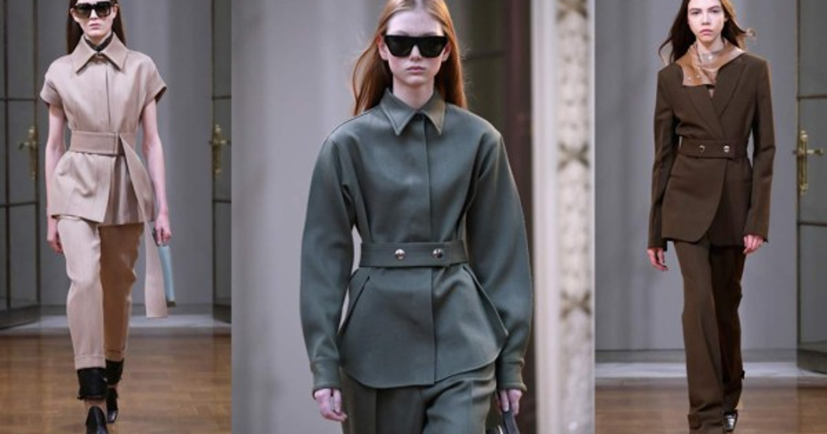 La colección presentó una estructura por capas dirigida a la mujer trabajadora para la temporada otoño-invierno, con atuendos estilo trajes de safari, cuellos abotonados, grandes cinturones y enormes bolsos, llevados al hombro y colgando medio abiertos.
