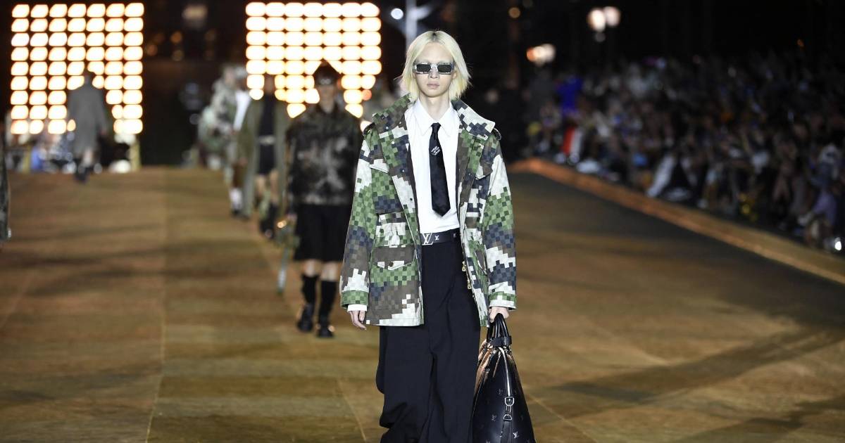 El flamante director artístico de LV optó por los tonos militares como verde o caqui, los motivos de camuflaje.