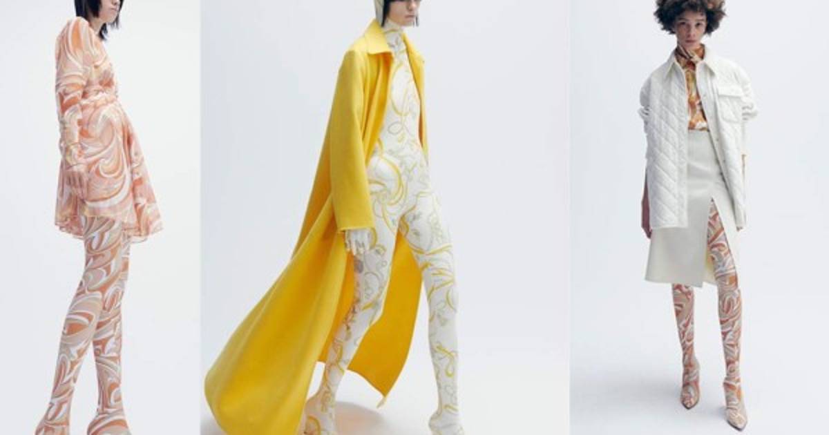 Emilio Pucci ha presentado una colección marcada por los colores y las formas: amarillos dorados, blancos y crudos, junto a naranjas en estampados que recordaban a Versace, para ser usados con monos con capucha pegados al cuerpo, debajo de amplios abrigos abiertos, faldas y vestidos transparentes.