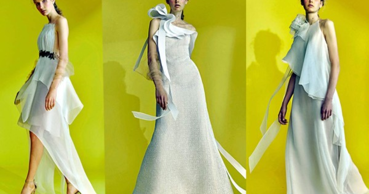 Para la noche, trajes con escotes triangulares, tipo halter o palabra de honor, los cuales se ven rematados con vuelos, lentejuelas o aplicaciones florales en 3D, convirtiéndose en auténticas obras de arte.
