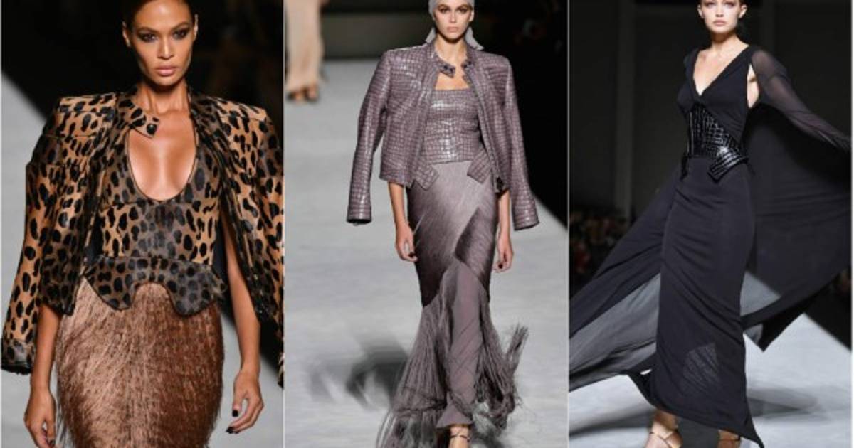 El diseñador Tom Ford presentó su nueva colección de forma extraoficial durante la Semana de la Moda de Nueva York. Este año, el modisto optó por faldas de tubo y ajustados vestidos con corte por debajo de la rodilla, rematados con frecuencia por delicados encajes en negro, blanco, beige y gris, y complementadas por sencillos zapatos en punta.