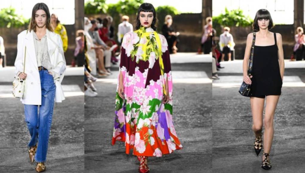 Valentino regresa a Italia 'para dar una señal positiva al sistema de moda italiano puesto a prueba por la crisis sanitaria mundial' y su desfile se realizó en la antigua fábrica de fundición convertida en un espectacular jardín de invierno repleto de plantas y flores con música en vivo y con el público distanciado.
