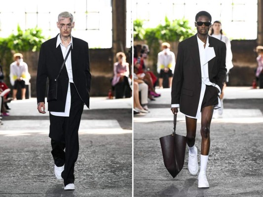 Valentino repite sus bolsos rock, pequeños baúles, de colores vistosos y con grandes clavos. En las propuestas para hombres, trajes amplios en colores tierra y chaquetas llevadas con pantalones ciclistas. EFE