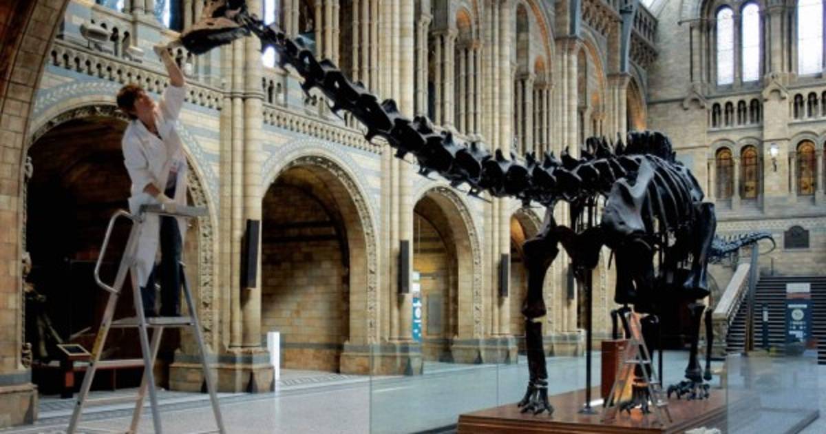 El esqueleto, que recrea la figura de un dinosaurio de la especie Diplodocus carnegii, se mostró desde 1905 en la sala de entrada del Museo de Historia Natural hasta 2017, cuando, después de 112 años, fue retirado para ser prestado.