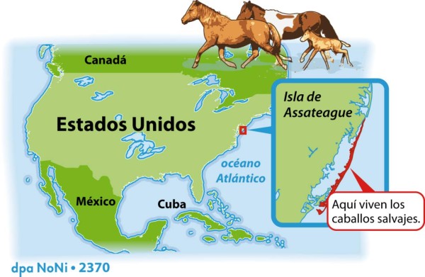 De repente aparece un grupo de caballos en la carretera. Los automóviles deben esperar. En la isla de Assateague, en la costa atlántica de Estados Unidos, esto suele ocurrir. Y los caballos tienen preferencia de paso. Esto es así porque se trata de animales salvajes, que viven allí en completa libertad y sin contacto directo con los seres humanos.