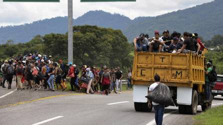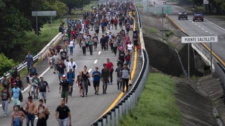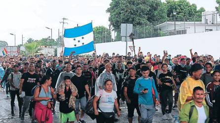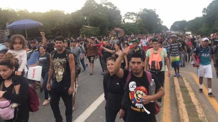 Mundo Miles de migrantes parten en caravana a Estados Unidos Los migrantes argumentan que su principal motivo de trasladarse caminando es por la falta de empleo y su deseo de ir a EE.UU. Agencia EFE