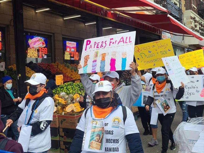 Mundo Indocumentados marchan por Nueva York por una reforma migratoria y respeto La marcha fue acogida a su paso por trabajadores que tocaban el claxon de sus coches o autobuses. Agencia EFE