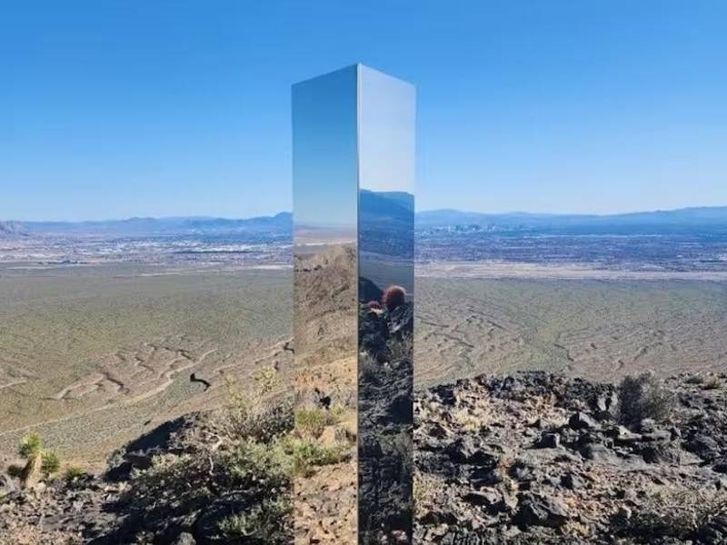 Mundo Encuentran un misterioso monolito en medio del desierto de EEUU Un monolito cubierto de espejos fue hallado el fin de semana en un desierto de Las Vegas. Agencia AFP