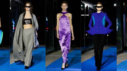 Cuero, bordados y chaquetas, mas atuendos con toques de rosa o amarillo fluorescente y verde olivo forman parte de la propuesta de moda para Primavera-Verano del 2024.