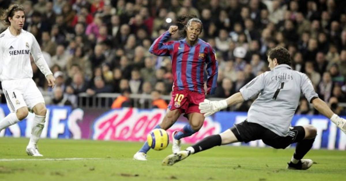Enfrente estaba un equipo entrenado por Vanderlei Luxemburgo con Zidane, Ronaldo, Beckham, Robinho, Casillas... y Sergio Ramos. El central fue el principal damnificado del momento de forma de Ronaldinho, que le dejó en evidencia en dos jugadas en las que mezcló la potencia y el desborde que le caracterizaban para finalizar a gol con calidad. El segundo gol en su cuenta, el tercero del Barcelona, será recordado porla imagen de parte de la afición del Bernabéu aplaudiendo al brasileño.