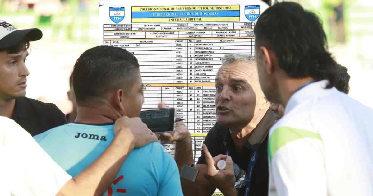 "Expulsé al entrenador del equipo Marathón. Una vez finalizado el partido ingresó al terreno a desaprobar mis decisiones arbitrales con un celular en la mano diciendo, 'me robaron'... Una vez finalizado el partido ingresó al terreno de juego el jugador no uniformado del equipo Marathón Brian Farioli a desaprobar mis decisiones arbitrales", dice en el acta.