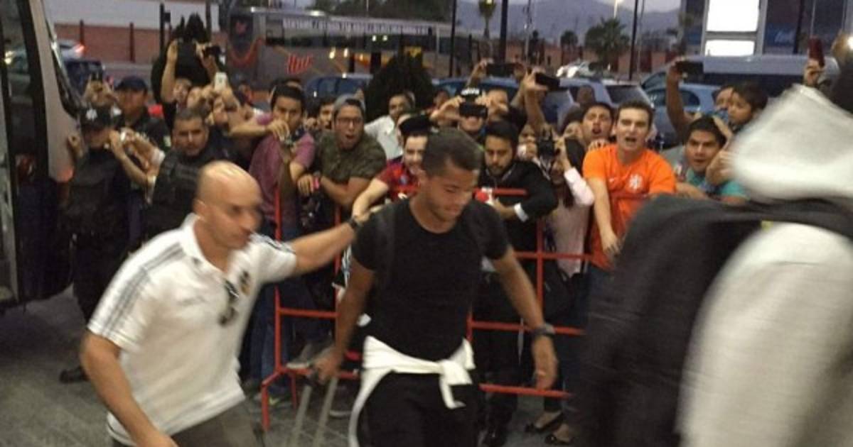 Al momento en el que el atacante mexicano bajó del autobús, los fanáticos comenzaron a corear contra él, como lo hiciera Agustín Marchesín el pasado miércoles en la cancha del StubHub Center.