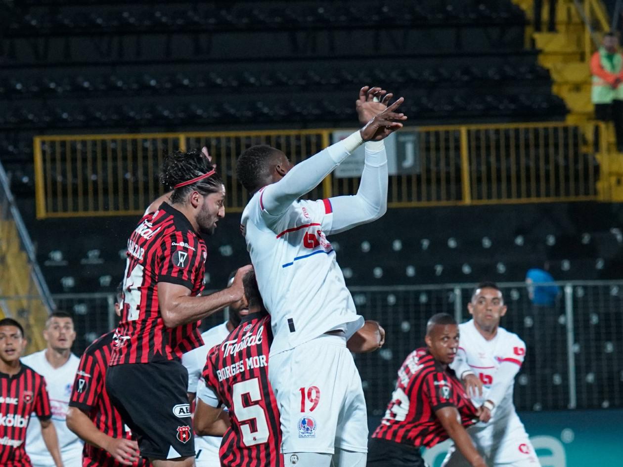 Minuto 21 Uyyy. Remate de Jeison Lucumí dentro del área y el balón es desviado por Facundo Queiroz. Llegada peligrosa del Alajuelense.