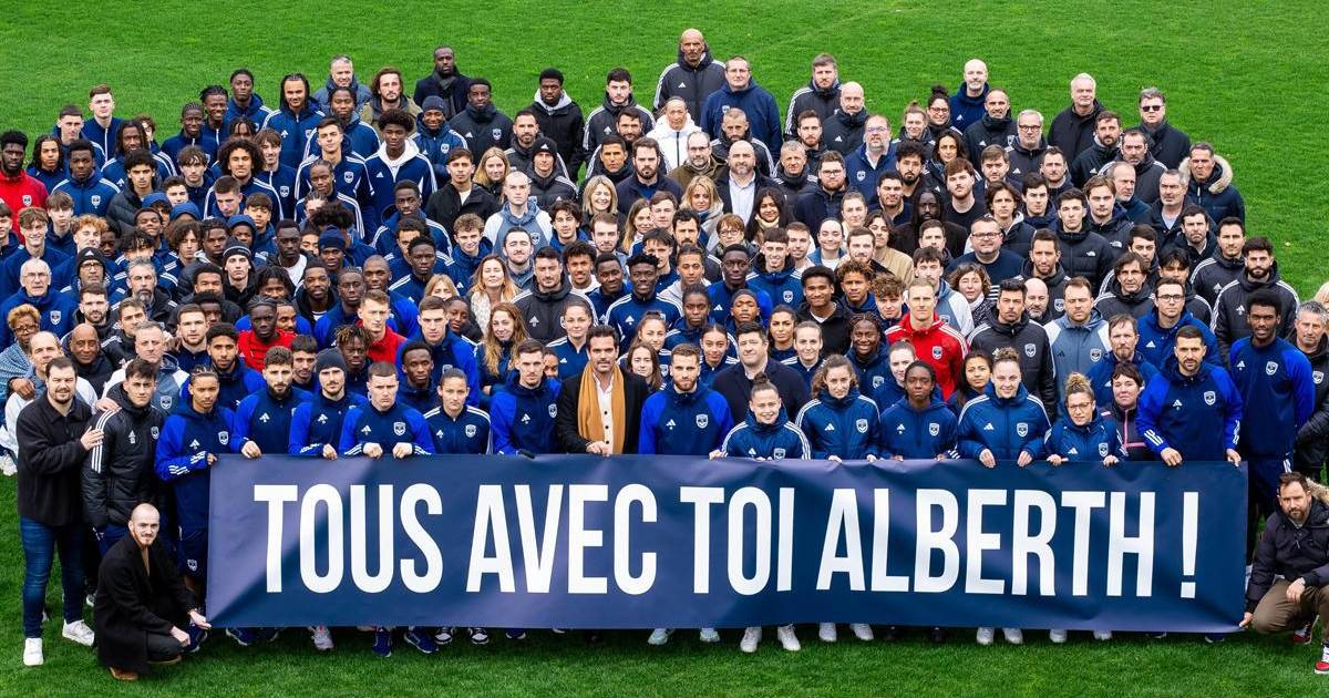 Posando en grupo como muestra de unidad, toda la familia del Girondins de Burdeos mostró el cartel con la leyenda: “Todos contigo Alberth”.