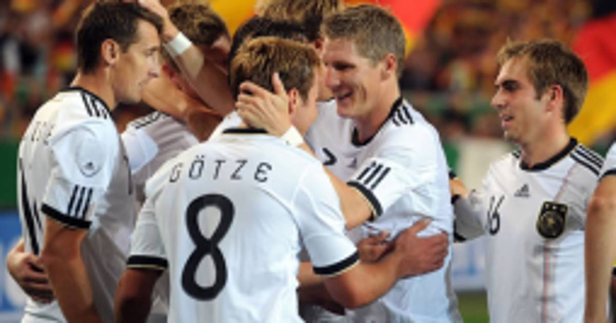 3; Alemania: Neuer; Träsch, Hummels (Boateng, m.87), Badstuber, Lahm; Schweinsteiger (Rolfes, m.85), Kroos; Müller, Götze (Cacau, m.87), Podolski (Schürrle, m.46); y Gómez (Klose, m.46).