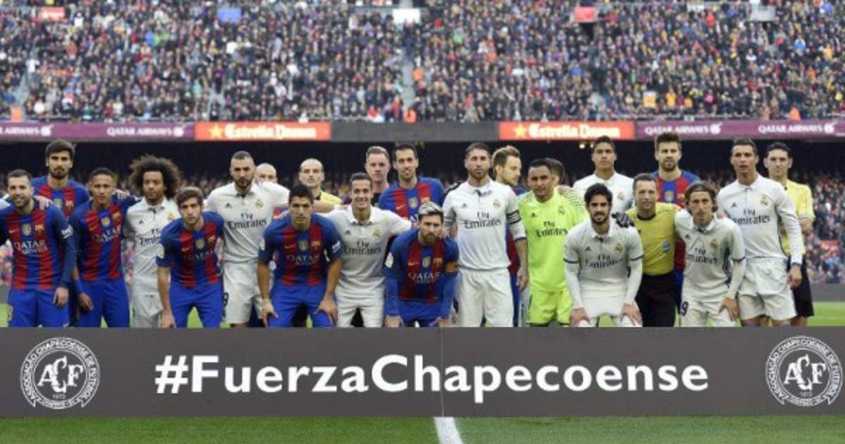 El Barcelona y Real Madrid guardaron previo al inicio del clásico un sentido minuto de silencio en memoria de las víctimas del accidente aéreo del Chapecoense en Colombia, en donde fallecieron 71 personas.