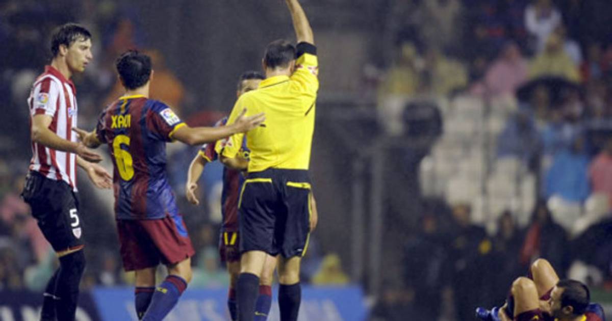 Luego, a cuatro minutos de cumplirse el tiempo reglamentario, cuando fue expulsado David Villa, el Athletic encontró ánimo y un poco de aire con un tanto de Gabilondo en el minuto 89, pero Busquets acabó con las esperanzas locales cerrando el marcador en una contra en el 92.