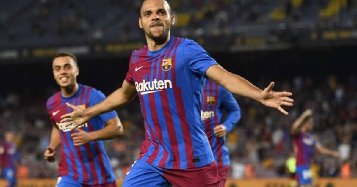 El atacante neerlandés Depay dejó destellos de calidad, entre ellos un centro medido al área que Gerard Piqué (19) aprovechó para cabecear a la red el 1-0. Piqué marcó el primer gol del Barcelona en la temporada 2021-2022 y besó el escudo del Barcelona. Foto Twitter FC Barcelona. |