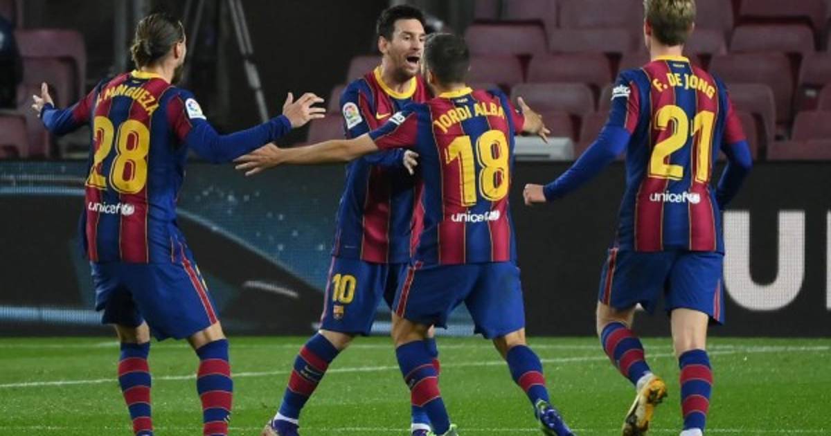 2 - Barcelona: Ter Stegen; Dest, Araújo, Mingueza (Lenglet, min. 79), Alba; Busquets (Aleñá, min. 66), De Jong; Messi, Pedri (Pjanic, min. 74), Griezmann (Trincao, min. 66); y Braithwaite.1 - Real Sociedad: Remiro; Gorosabel, Le Normand (Sagnan, min. 85), Zubeldia, Monreal; Zubimendi, Guevara (Rubén Navarro, min. 56), Mikel Merino; Portu (Isak, min. 64), Willian José y Januzaj (Barrenetxea, min. 56).