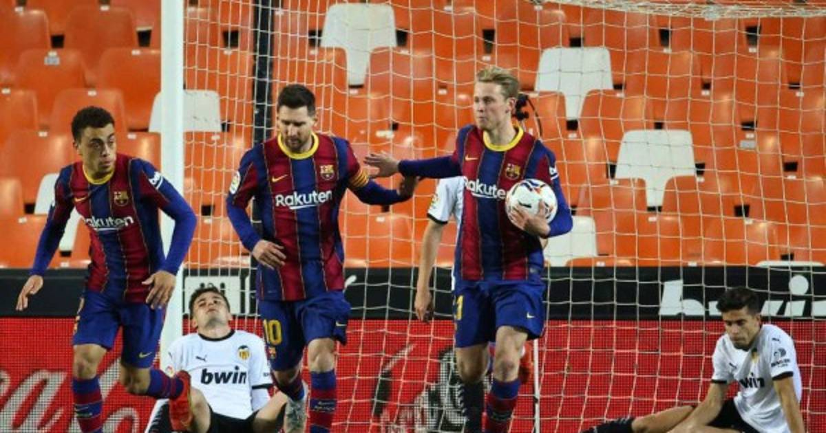 2 - Valencia: Cillessen, Correia, Paulista, Guillamón (Gameiro, m.79), Lato (Diakhaby, m.64), Gayá, Wass, Racic (Christian Oliva, m.79), Soler, Maxi Gómez y Guedes.3 - Barcelona: Ter Stegen, Araujo, Piqué, Lenglet, Dest (Sergi Roberto, m.75), De Jong, Busquets, Pedri (Ilaix Moriba, m.75), Jordi Alba, Griezmann y Messi.