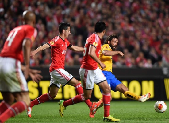 Los tres jugadores del medio campo italiano, Pogba, Pirlo y Marchisio, hicieron olvidar la baja de Arturo Vidal, uno de los hombres clave de Conte, con un fútbol de toque que desactivó el juego del Benfica.