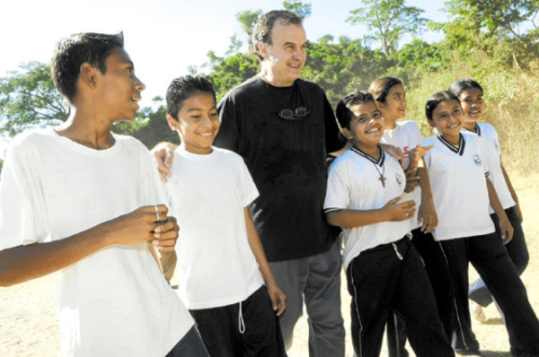Bielsa, quien llegó este sábado al país, se trasladó a la colonia La Campanera, en el municipio de Soyapango, y al cantón El Rosario, de la población de Tonacatepeque, ambos en el departamento de San Salvador, para acompañar a los alumnos de Fútbol Forever.