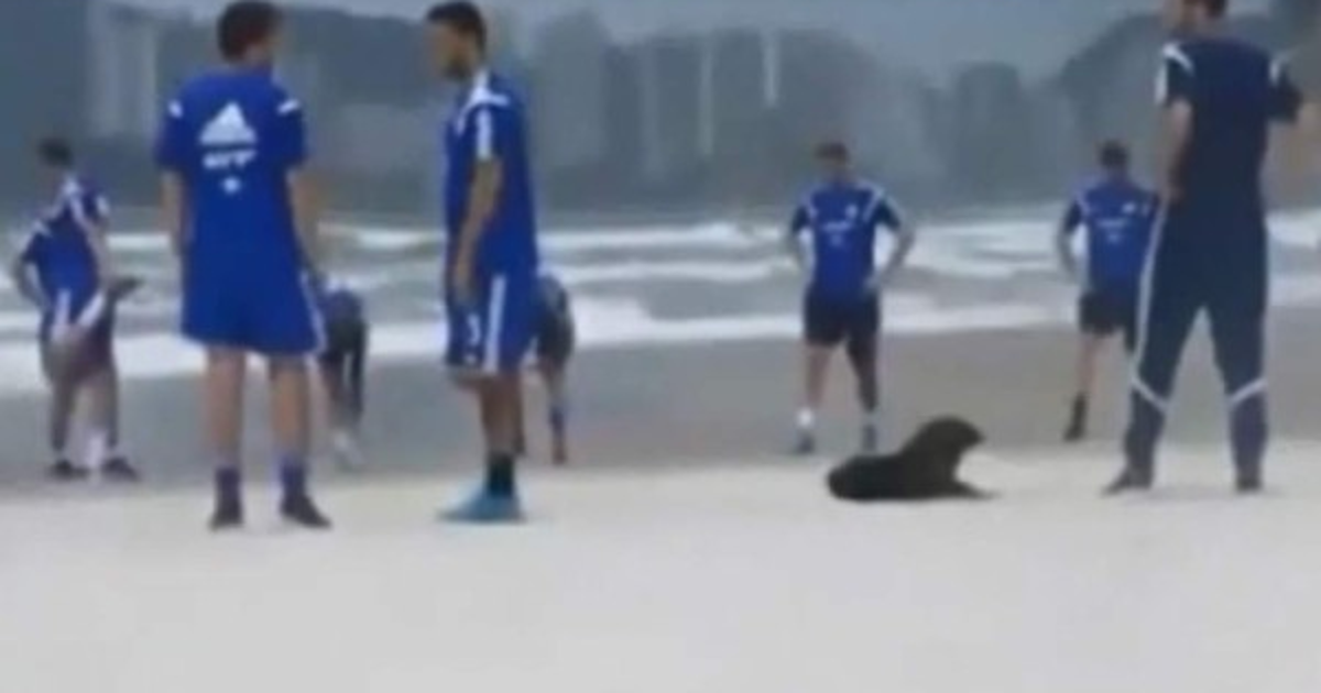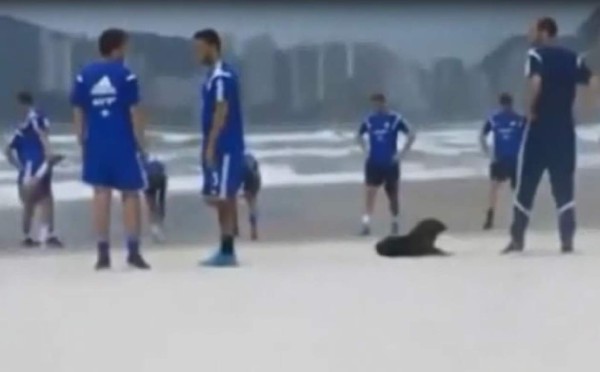 A lo largo de la prácticas, el animal siempre por delante, llevó a los jugadores corriendo por toda la playa como si lo estuviesen escoltando.