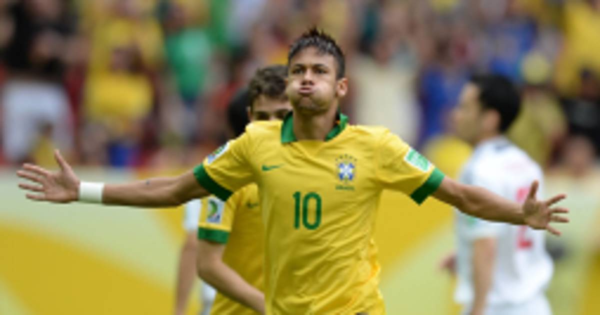 Neymar tardó apenas tres minutos en poner en ventaja a Brasil, después de recibir una asistencia de pecho de Fred en la frontal del área. El nuevo jugador del Barcelona la pudo en la escuadra nipona con una brillante volea al primer toque.