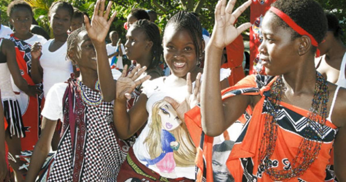 Las vuvuzuelas y su ruido ensordecedor, así como los timbales, no pararon de sonar ni un instante, mientras las niñas y jovencitas bailaban coordinadamente en espera del conjunto sudamericano.