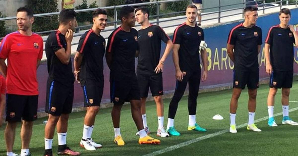 | La plantilla del Barcelona B en la primera sesión de entrenamiento. Foto Twitter @MartinezFerran