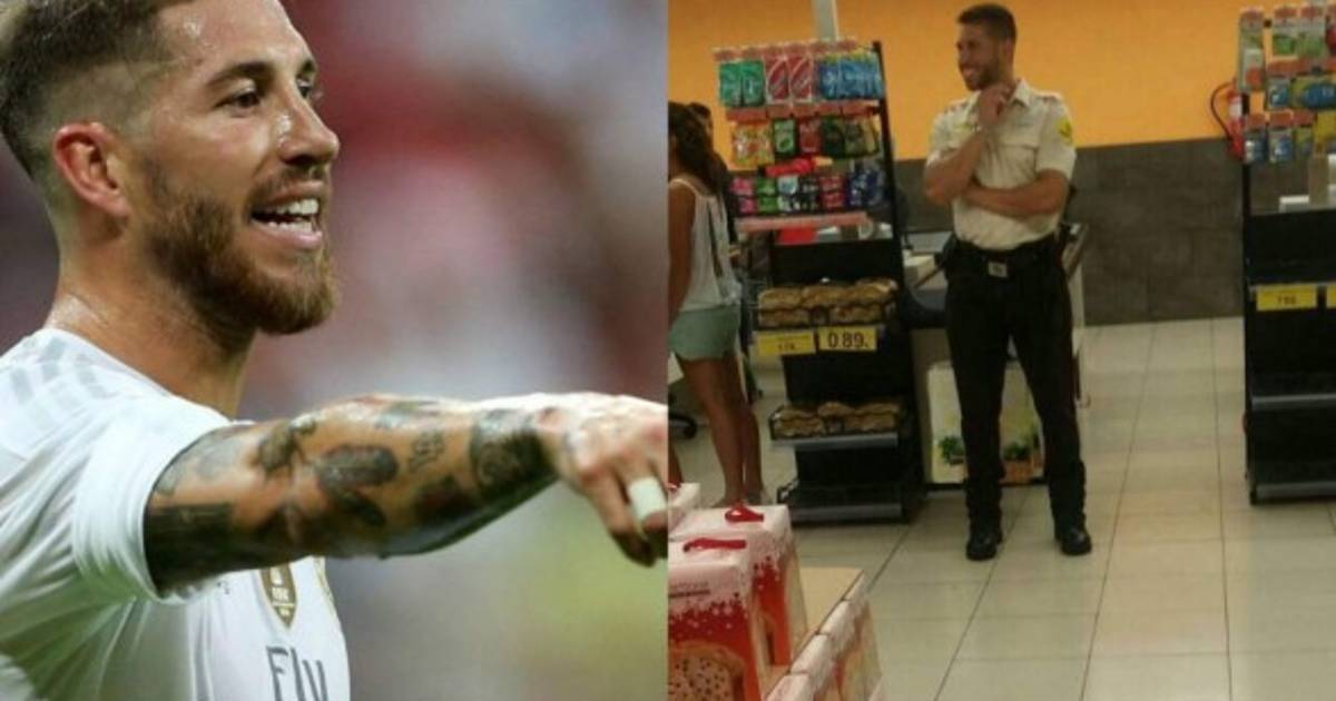 El defensor español Sergio Ramos se unió a una divertida broma que comenzó a circular a través de Twitter, donde se aseguraba que le habían visto trabajando como guardia de seguridad en una cadena de supermercados.