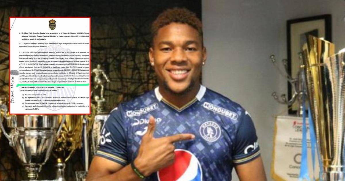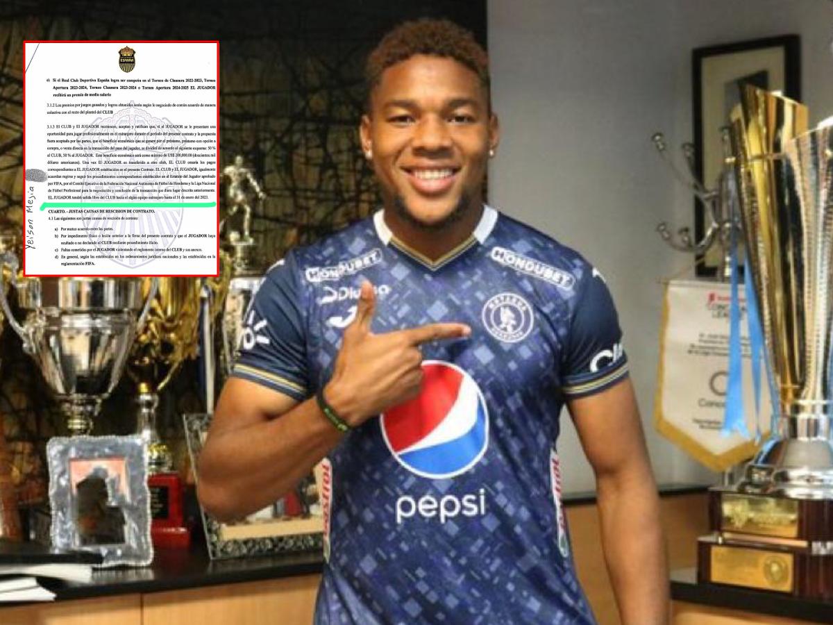 En ese documento aparece una cláusula donde se dice que Yeison Mejía podía salir libre siempre y cuando se tratara de un equipo extranjero y no de la Liga Nacional de Honduras.