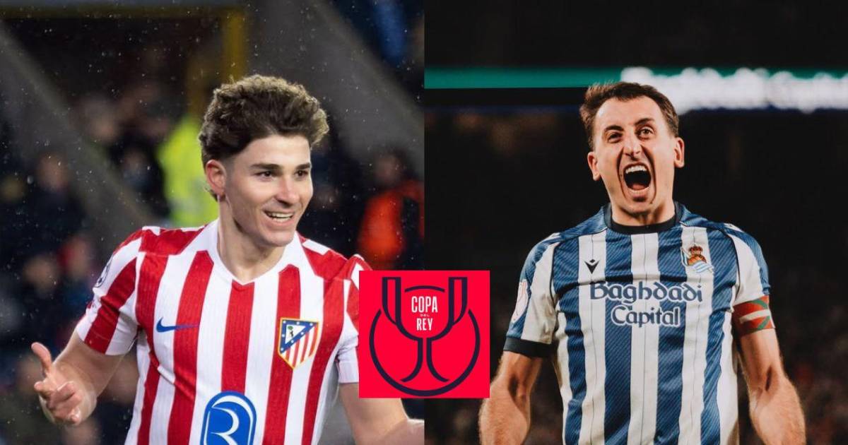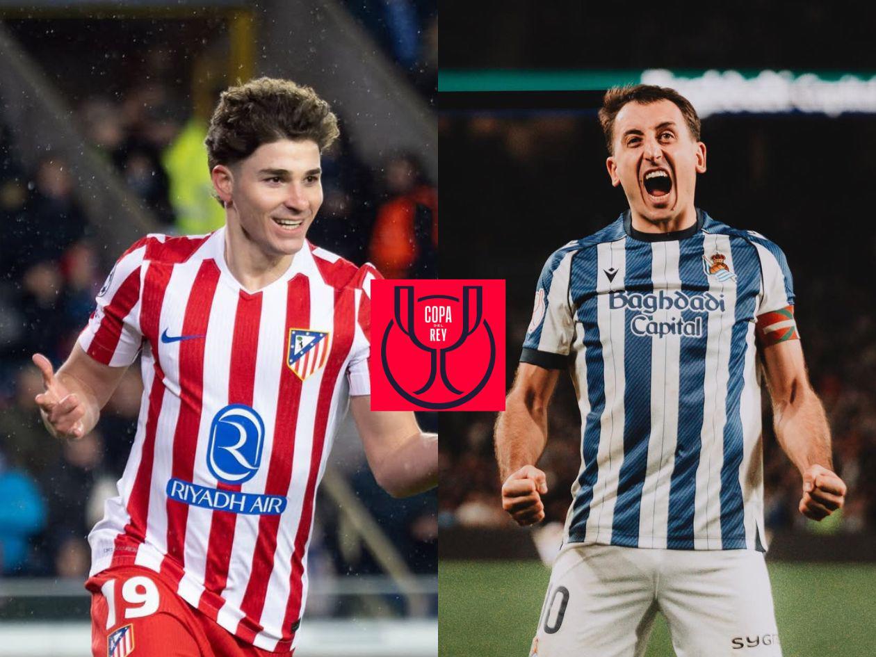Diego Simeone frente a Pellegrino Matarazzo, desde la pizarra. Julián Álvarez frente a Mikel Oyarzabal; Antoine Griezmann frente a Luka Sucic; Unai Marrero frente a Juan Musso, los porteros de la Copa del Rey; Carlos Soler frente a Koke Resurrección; Ander Barrenetxea frente a Giuliano Simeone; Gonçalo Guedes frente a Ademola Lookman; Jon Martín frente a Marc Pubil; Marcos Llorente frente a Beñat Turrientes; Robin Le Normand frente a Duje Caleta-Car; Jon Aramburu frente a Nahuel Molina; Sergio Gómez frente a Matteo Ruggeri. Son los once probables en la final de este sábado.
