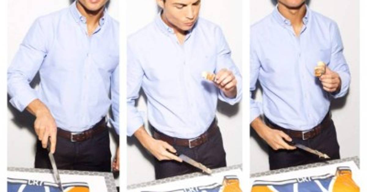 El delantero portugués del Real Madrid, Cristiano Ronaldo, eligió un explícito pastel en forma de calzoncillos para celebrar el primer año de su línea de ropa interior.
