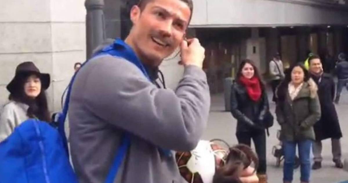 El delantero portugués Cristiano Ronaldo se ha vestido de indigente en plena luz del día para sorprender a un joven admirador en el centro de Madrid