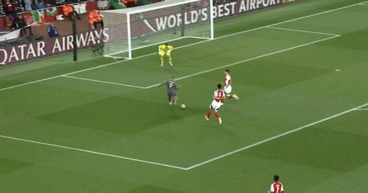 La jugada se produjo al minuto 30 del primer tiempo, cuando Jude Bellingham filtró un pase perfecto en profundidad para Mbappé. Con su habitual velocidad, el delantero francés dejó atrás a la defensa del Arsenal y se plantó frente a Raya.