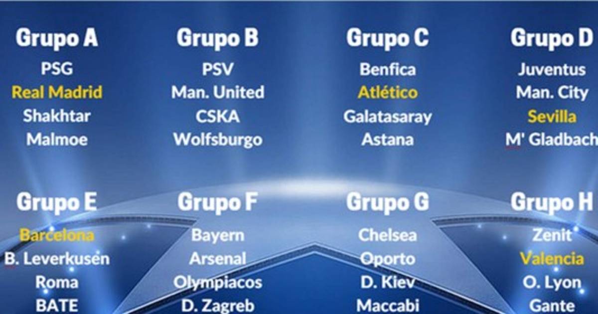 El Valencia, que regresa a la Liga de Campeones tras derrotar al Mónaco en la previa, jugará en el grupo H ante el Zenit San Petersburgo, Lyon y Gante. El Benfica de Lisboa, el Atlétic Madrid, Galatasaray y Astana quedaron encuadrados en el grupo C.