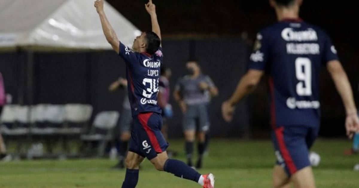 Las águilas heridas no bajaron los brazos y se fueron al ataque. Omar Elvir centró desde la izquierda y Kevin López llegó a cabecear para marcar el descuento a los 58'. Kevin López celebrando su primer gol del partido. Foto EFE